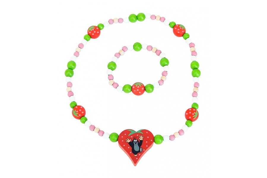 Dětský náhrdelník a náramek - sada (2ks) s krtečkem a jahůdkami