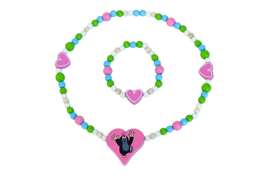 Dětský náhrdelník a náramek - sada (2ks) s krtečkem s srdíčky